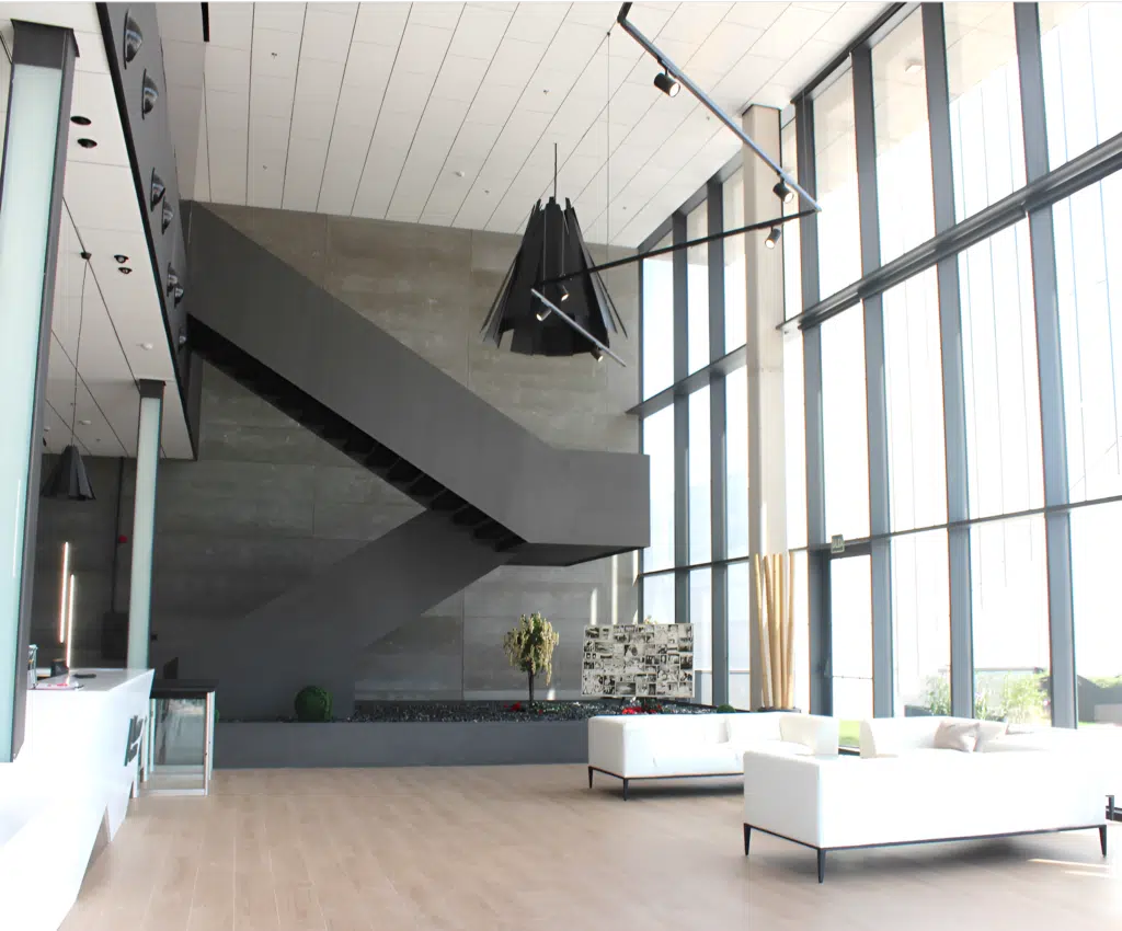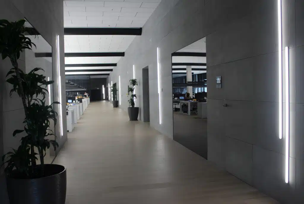 - Diseño y suministro de iluminación arquitectónica y decorativa en interiores y exteriores de las oficinas.